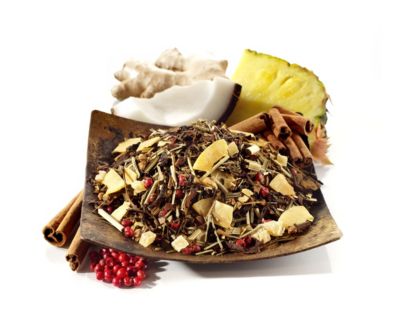 - I honestly couldn't taste any of the pineapple or coconut pieces - so when I saw them on the ingredient list, it surprised me. There's more cinnamon, pepper, clove, ginger, and cardamom - all of the exotic spices. So don't expect a whiff of the tropical.